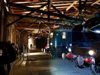 - Geheimnisvoll beleuchtetes Rundhaus mit seinen Lokomotiven